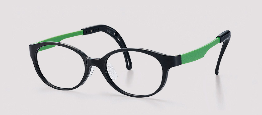 The glasses do not fall down even when fitted with heavy lenses, including high-power lenses, prism lenses, or bonding lenses are fitted, when children are moving, or when a patch is used to treat amblyopia.