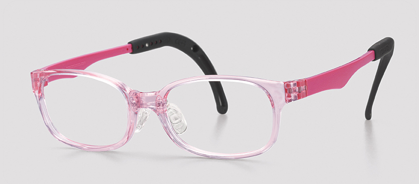 Les lunettes ne tombent pas, même lorsqu'elles sont munies de verres lourds, notamment de verres de forte puissance, de verres à prisme ou de verres de liaison, lorsque les enfants bougent ou lorsqu'un patch est utilisé pour traiter l'amblyopie.