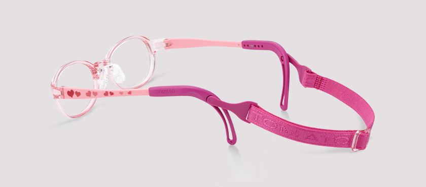 Les lunettes ne tombent pas, même lorsqu'elles sont munies de verres lourds, notamment de verres de forte puissance, de verres à prisme ou de verres de liaison, lorsque les enfants bougent ou lorsqu'un patch est utilisé pour traiter l'amblyopie.