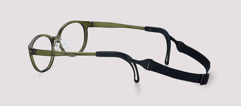 Gli occhiali non cadono anche se dotati di lenti pesanti, inclusi obiettivi ad alta potenza, lenti a prisma o lenti adesive, quando i bambini si muovono o quando viene utilizzato un cerotto per trattare l'ambliopia.