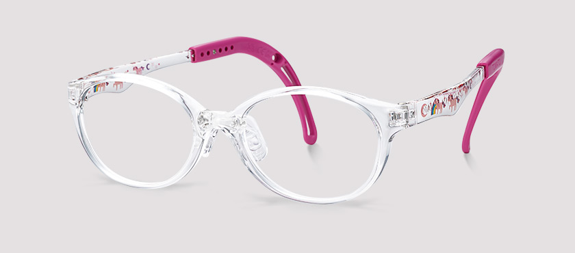 Gli occhiali non cadono anche se dotati di lenti pesanti, inclusi obiettivi ad alta potenza, lenti a prisma o lenti adesive, quando i bambini si muovono o quando viene utilizzato un cerotto per trattare l'ambliopia.