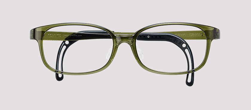 The glasses do not fall down even when fitted with heavy lenses, including high-power lenses, prism lenses, or bonding lenses are fitted, when children are moving, or when a patch is used to treat amblyopia.