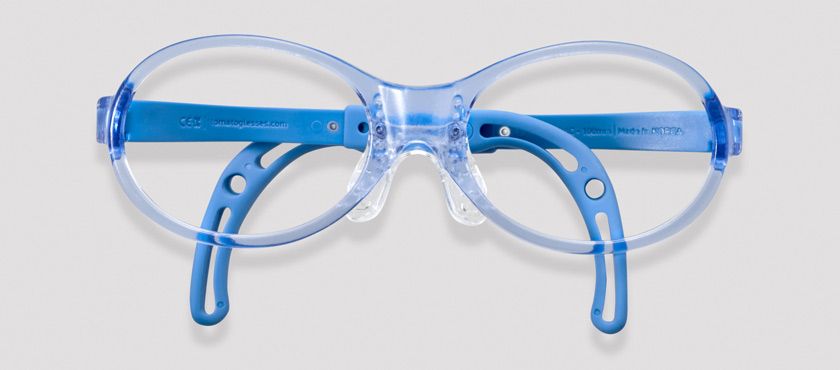 Bands for exclusive use with Tomato Baby Glasses are included. Even glasses with heavy high-power lenses do not slip down.
