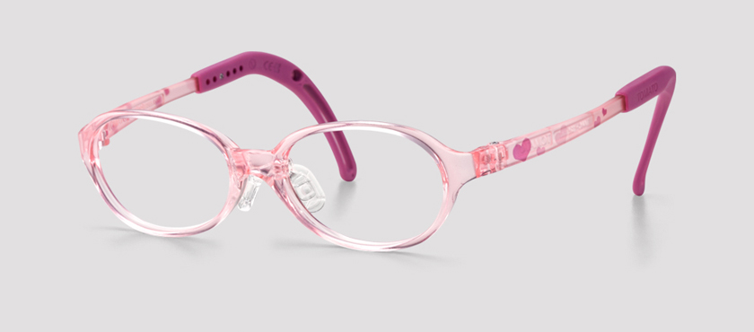 It is round shaped clear pink frame and hearts printed on the temples make it look more lovely.