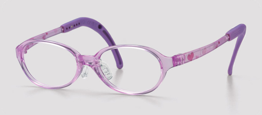 It is round shaped clear purple frame and hearts printed on the temples make it look more lovely.
