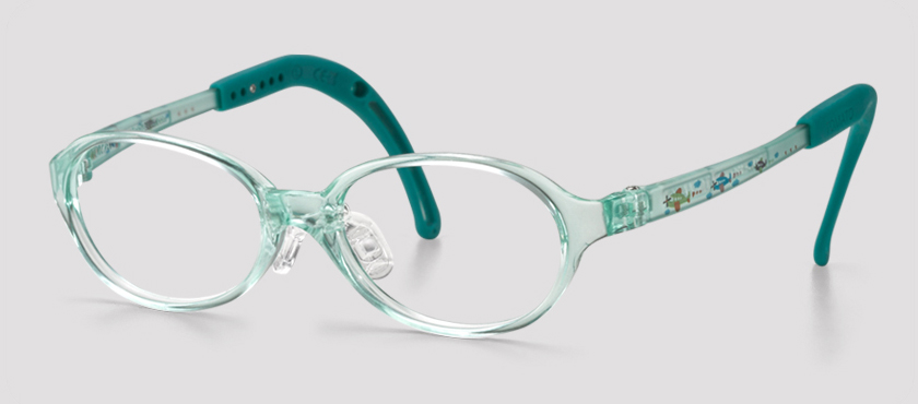It is round shaped green frame and airplanes printed on the temples make it more look cute.