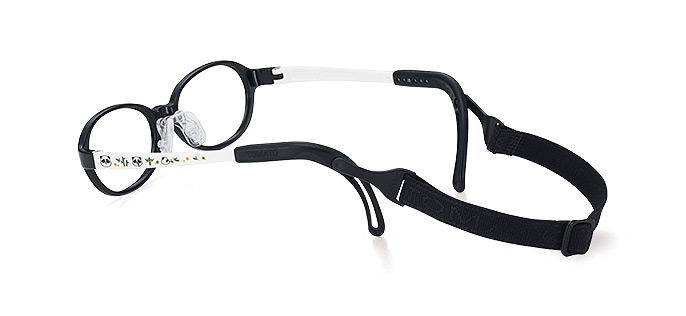 It is round shaped black frame and pandas printed on its white temples make it look more cute.
