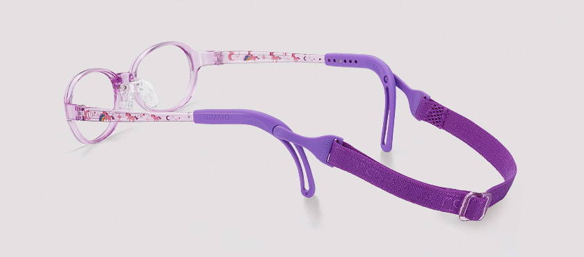 It is round shaped clear purple frame and unicorns printed on the temples make it look more lovely.