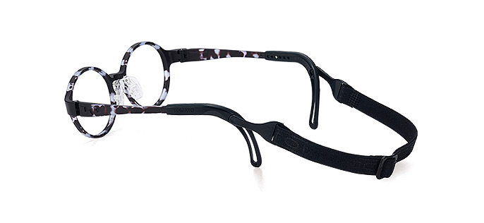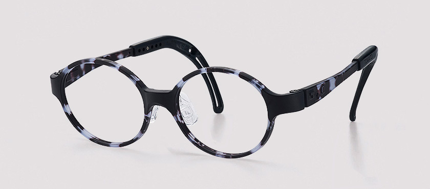 It is a round-shaped frame with white marble patterns, and figure shapes decorated on its temples make it look more unique.
