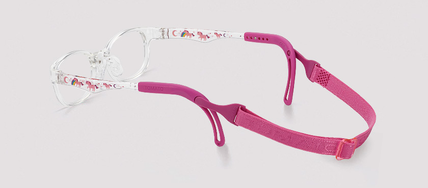 It is square shaped clear frame and unicorns printed on the temples make it look more lovely.