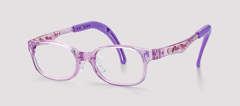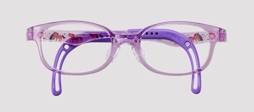 It is square shaped clear purple frame and unicorns printed on the temples make it look more lovely.