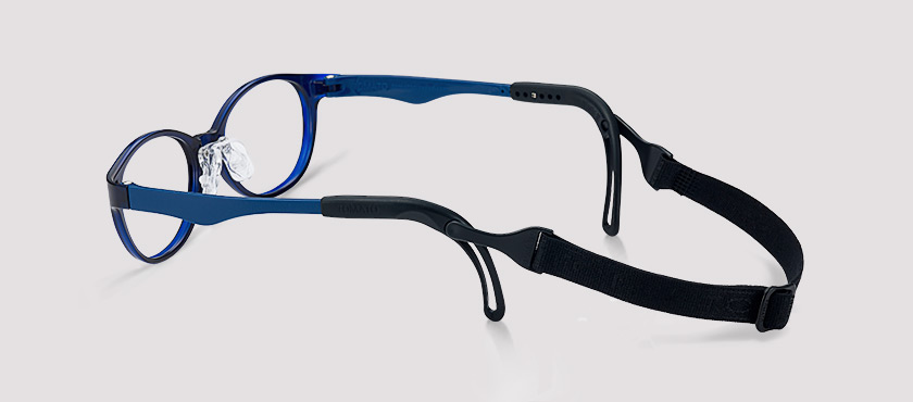 The glasses do not fall down even when fitted with heavy lenses, including high-power lenses, prism lenses, or bonding lenses are fitted, when children are moving, or when a patch is used to treat amblyopia.