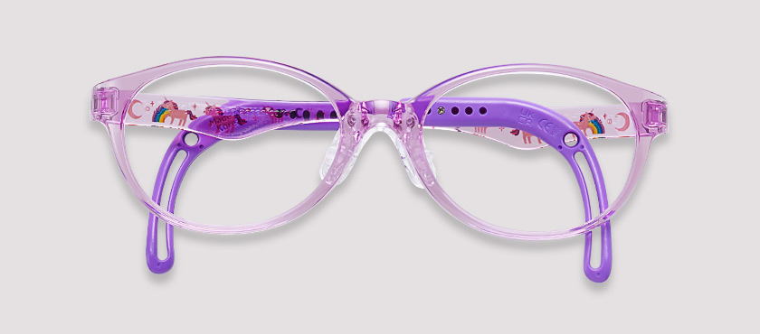 Featuring a soft, rounded frame with temples decorated in various designs 1 year old to 7 years.