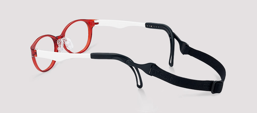 The glasses do not fall down even when fitted with heavy lenses, including high-power lenses, prism lenses, or bonding lenses are fitted, when children are moving, or when a patch is used to treat amblyopia.