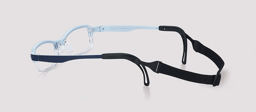 The temples are colored navy on the outside and light blue on the inside.